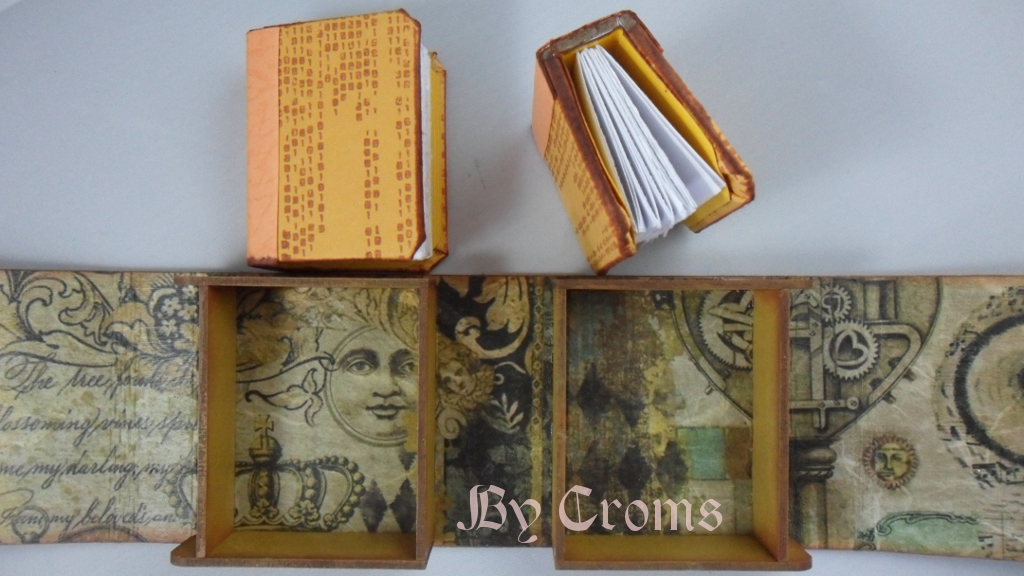 The inside and bottom were covered with Stamperia rice paper before securing the little box sides that had been painted and inked prior to fitting.